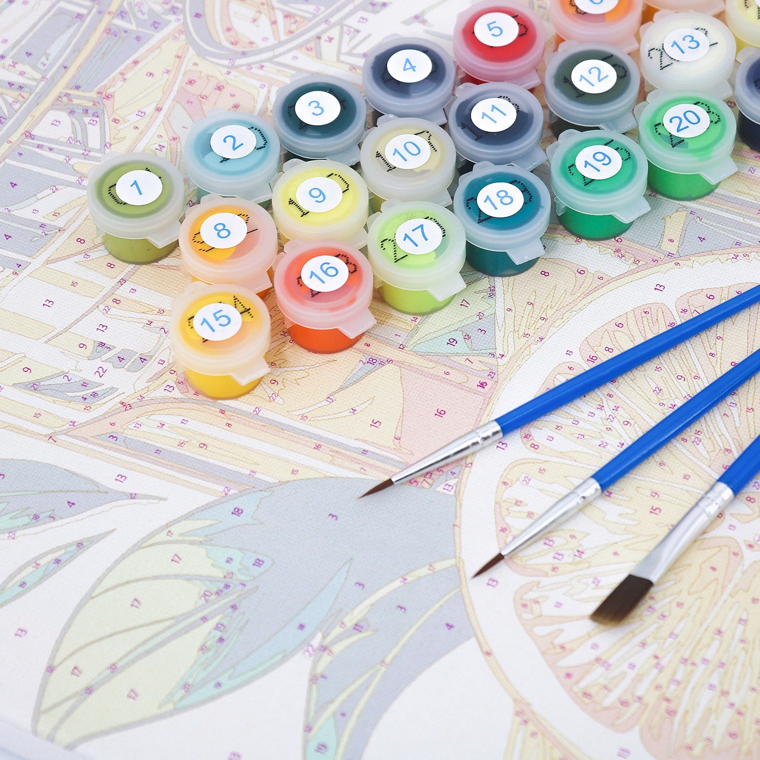 All essential painting utensils are included with every Numbers to Art painting. Additional accessories can be found in our Numbers to Art accessories section.
